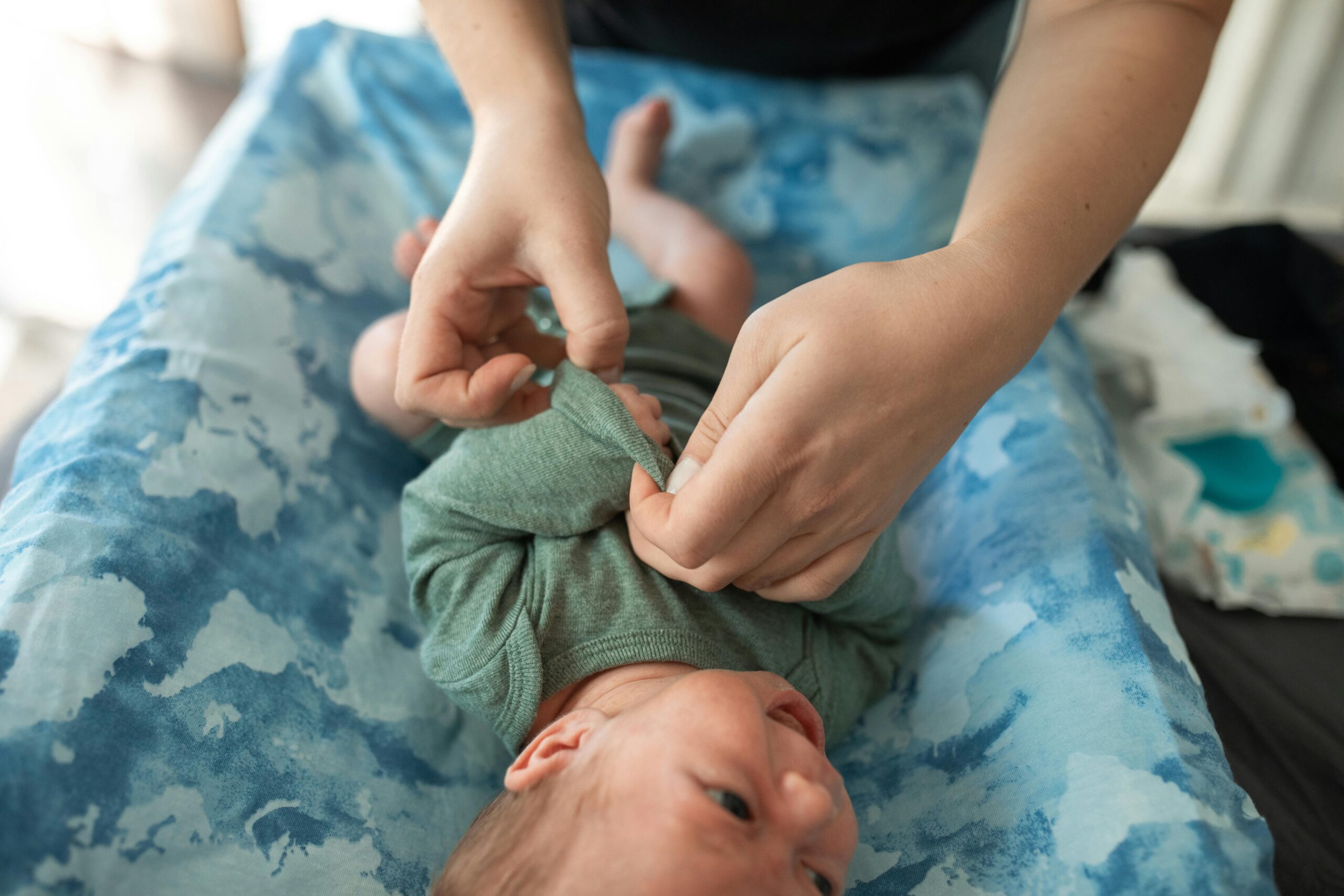 Dress your baby in cotton clothes to prevent irritation. Layering: Dress according to the weather but avoid overdressing to prevent overheating. Proper Fit: Ensure clothes are not too tight to allow comfortable movement.